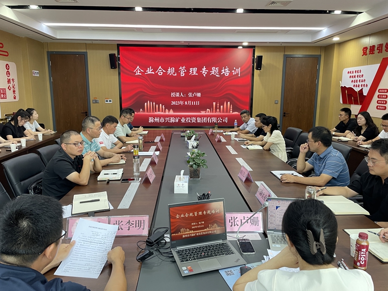 培訓(xùn)邀請(qǐng)安徽蘇滁律師事務(wù)所張盧姍律師從合規(guī)基本概念、合規(guī)發(fā)展歷程、合規(guī)文化機(jī)制、重要合規(guī)文件等方面入手,并結(jié)合礦業(yè)類企業(yè)合規(guī)案例實(shí)踐進(jìn)行專題授課。授課內(nèi)容緊密聯(lián)系實(shí)際,對(duì)集團(tuán)公司進(jìn)一步抓好合規(guī)管理工作提供有力的理論支撐。